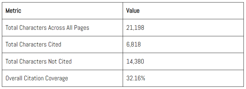 💡 El 32% de tu contenido es lo que realmente termina apareciendo en respuestas de IA como Google Vertex o ChatGPT, el resto se pierde por el camino. La cobertura varía mucho entre fuentes, y el sistema prioriza lo esencial del contenido: olvídate de atajos, la fuente y relevancia lo son todo para la visibilidad real.