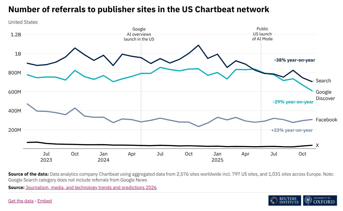 2️⃣ Un informe muestra una caída en el tráfico de búsqueda para los editores de noticias [EN]